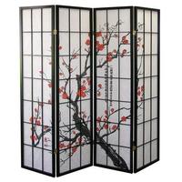 الأسود اليابانية زهر البرقوق 4-لوحة شاشة غرفة المقسم