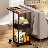 طاولة جانبية حديثة على شكل حرف C بإطار حديدي، مع عجلات، طاولة تلفاز محمولة، درج تخزين، طاولة سرير ضيقة، طاولة قهوة صغيرة